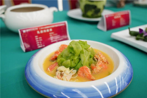 此次活动我校特派以中国烹饪大师黄盛为首的营养配餐制作团队出席,为了契合此次活动“健康广西,营养先行”主题,我校现场制作了牛骨髓蒸蛋、羊肚菌酿虾、乳鸽炖板栗等富含高营养的特色菜品,还有食材丰富、营养分配均衡的轻食简餐等美食。