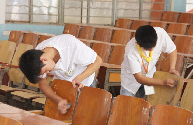 在清洁过程中,校长助理朱伟及各班班主任现场指挥并仔细地检查了各个教室、走廊、楼道的卫生,确保清除每一个卫生死角。在大家共同努力下,经过一个多小时的打扫,校园被清理得干干净净,走廊干净了,教室整洁了……整个校园环境面貌焕然一新。