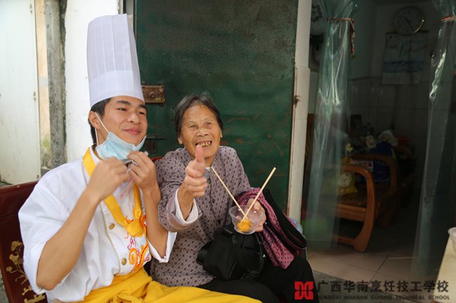 香喷喷的南瓜球和紫薯蛋糕端上了桌,小区里的老人们脸上挂满了笑容,和一群年轻的学生们聊着家常心里乐开了怀。为传承中华民族尊老爱幼的优良品德,引导学生传递正能量,创建和谐文明校园,营造关爱老人的良好道德风尚,近日,广西华南烹饪技工学校联合南宁电视台《新闻社区》栏目在纬武社区开展社区公益爱心活动,为社区居民送去了关心和祝福。