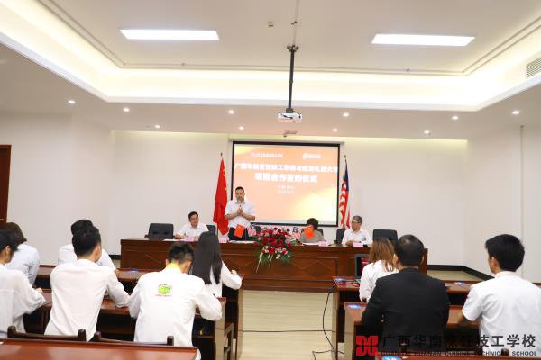 2019年6月3日上午,马来西亚成功礼待大学与广西华南烹饪技工学校国际交流合作签字仪式在匠心楼4楼会议室举行。参加签字仪式的有马来西亚成功礼待大学校长何淑娟女士、我校党委书记翟维铁、校长赵志权等两校代表。