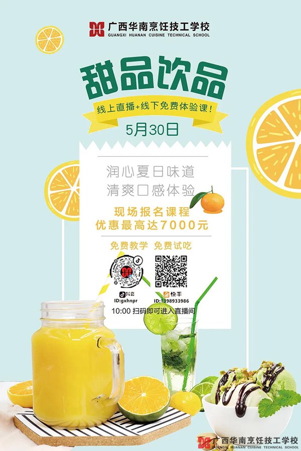 华南烹饪学校一大波高颜值甜品饮品来袭!直播体验!